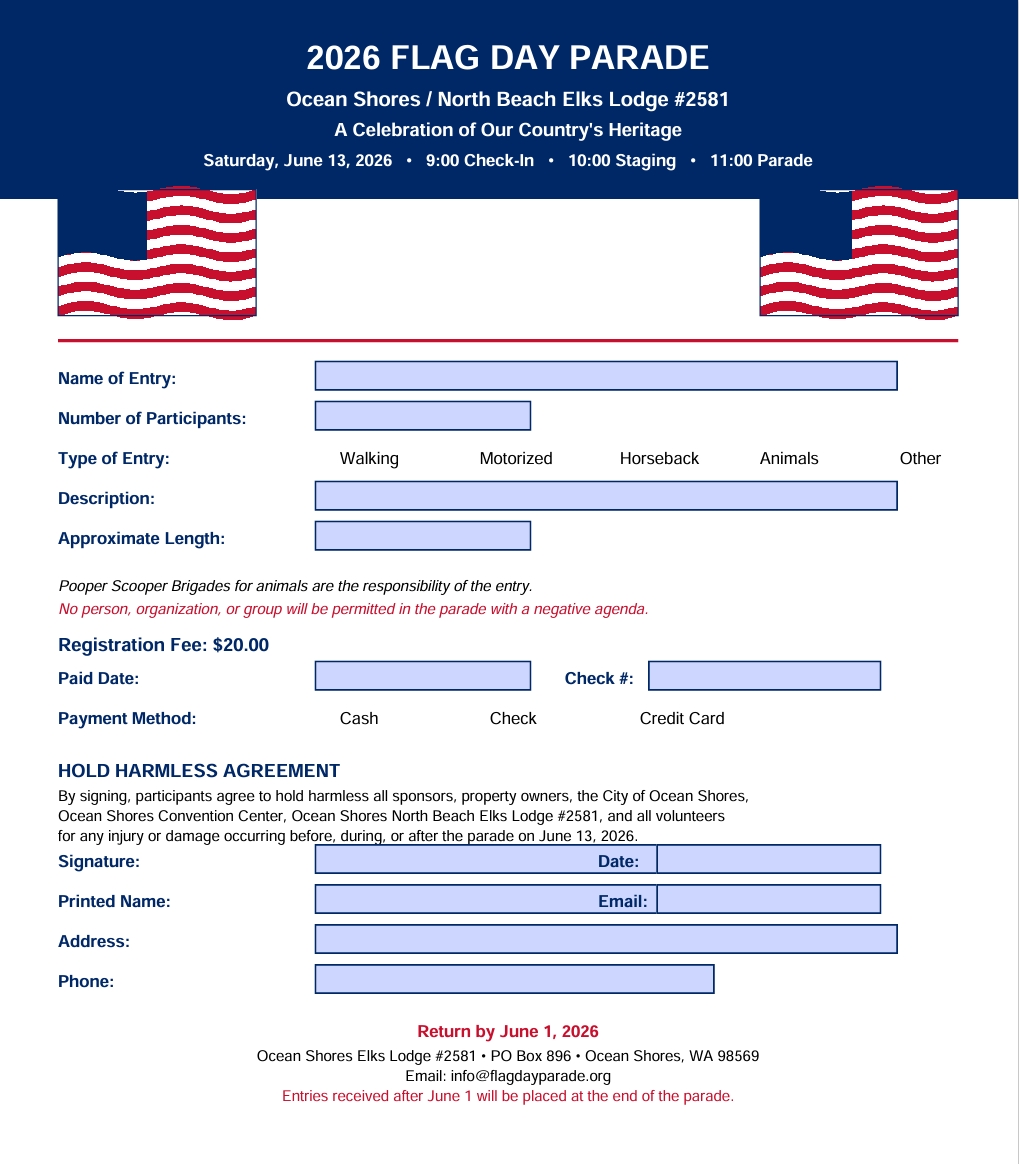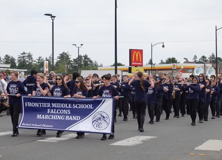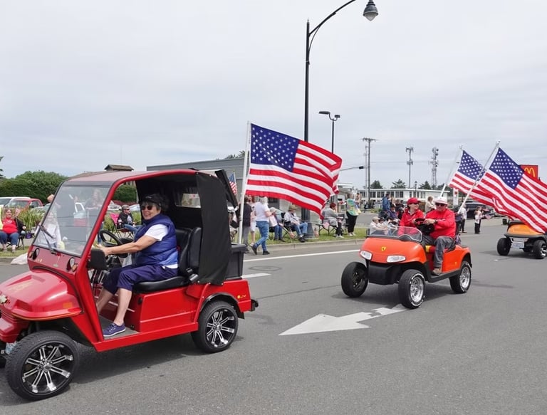 Join us downtown Ocean Shores where the parade marches through vibrant streets filled with flags and cheers.